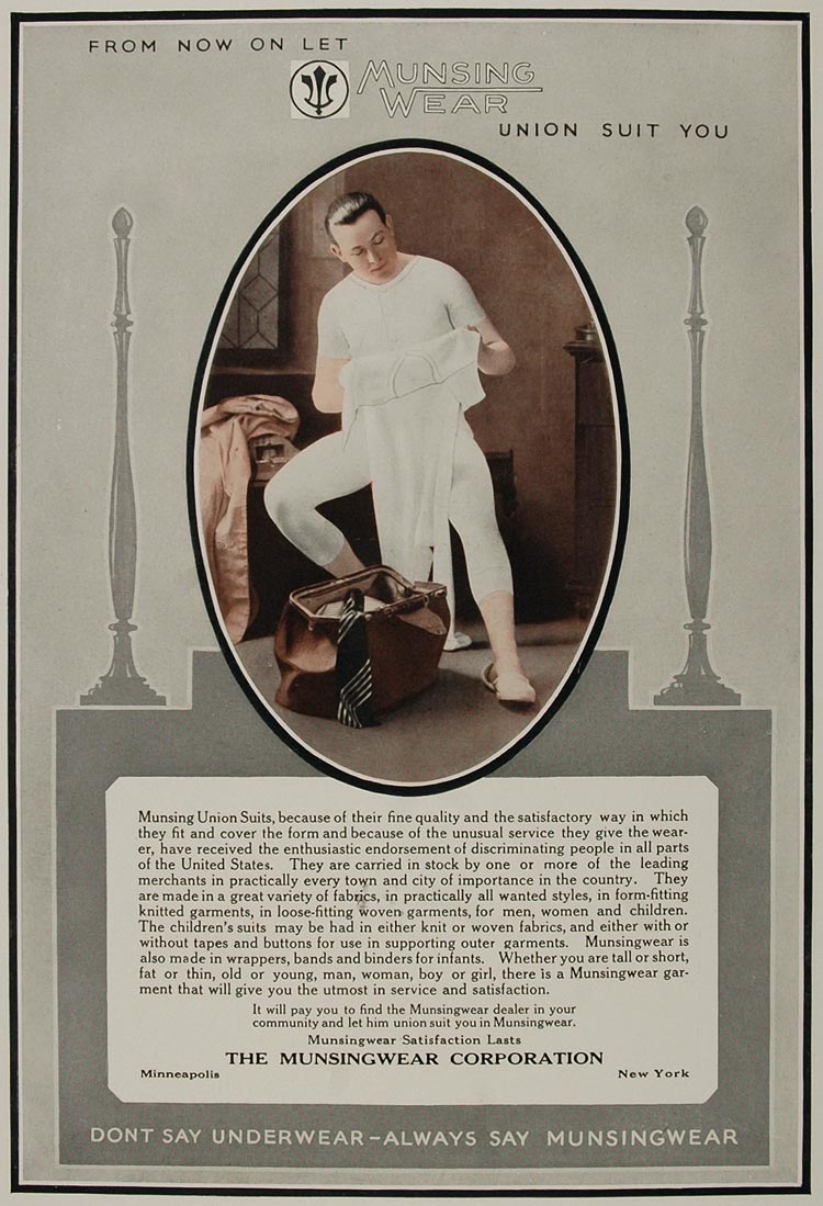 This is an original 1921 duotone print ad for Munsingwear Union Suits from The Munsingwear Corporation, Minneapolis and New York.
