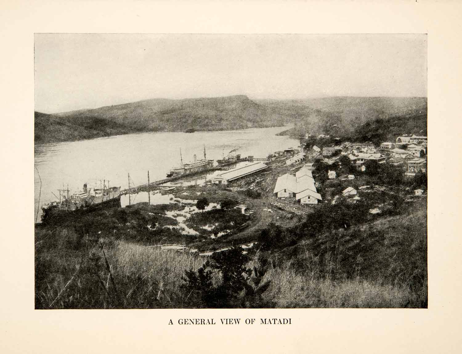 This is an original 1921 black and white halftone print of Matadi, Congo, Africa.