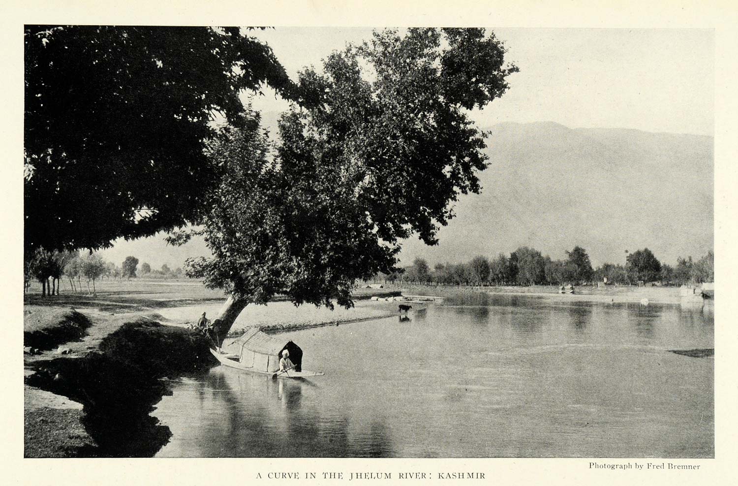 This is an original 1921 halftone print of a view of the Jhelum River in Kashmir, India. Photography courtesy of Fred Bremner.