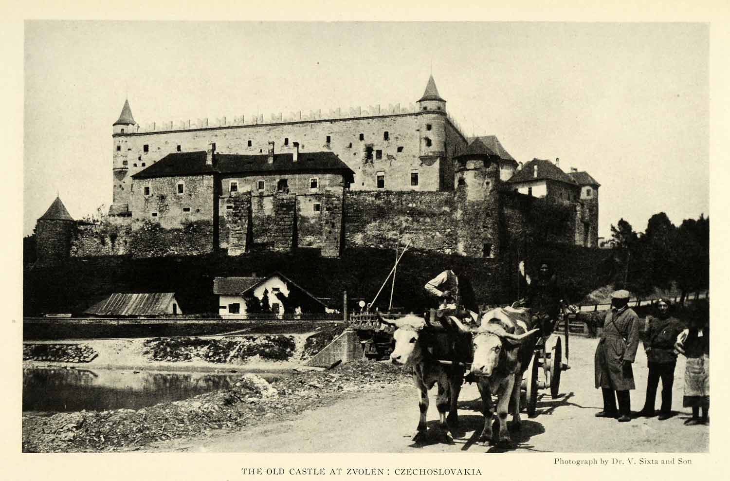 This is an original 1921 halftone print of the old castle at Zvolen in the Czech Republic.