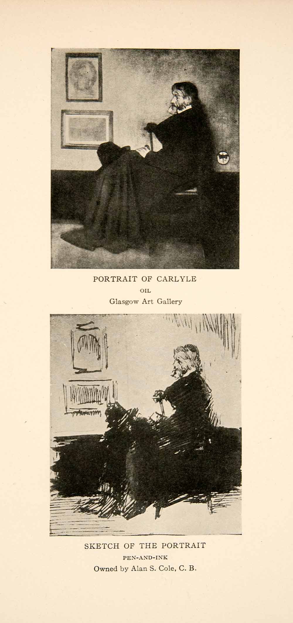 This is an original 1921 black and white halftone print of a portrait of a man named Carlyle in the top image and a sketch of that top image, in the bottom image.