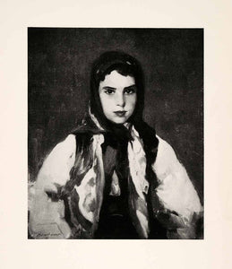 1921 Print Segovia Girl Robert Henri Portrait Scarf Spain Costume Child XAH2