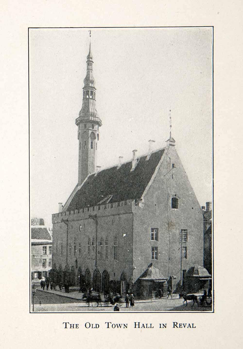 This is an original 1921 black and white halftone print of the old town hall in Reval, Estonia. Reval had since been renamed Tallinn.