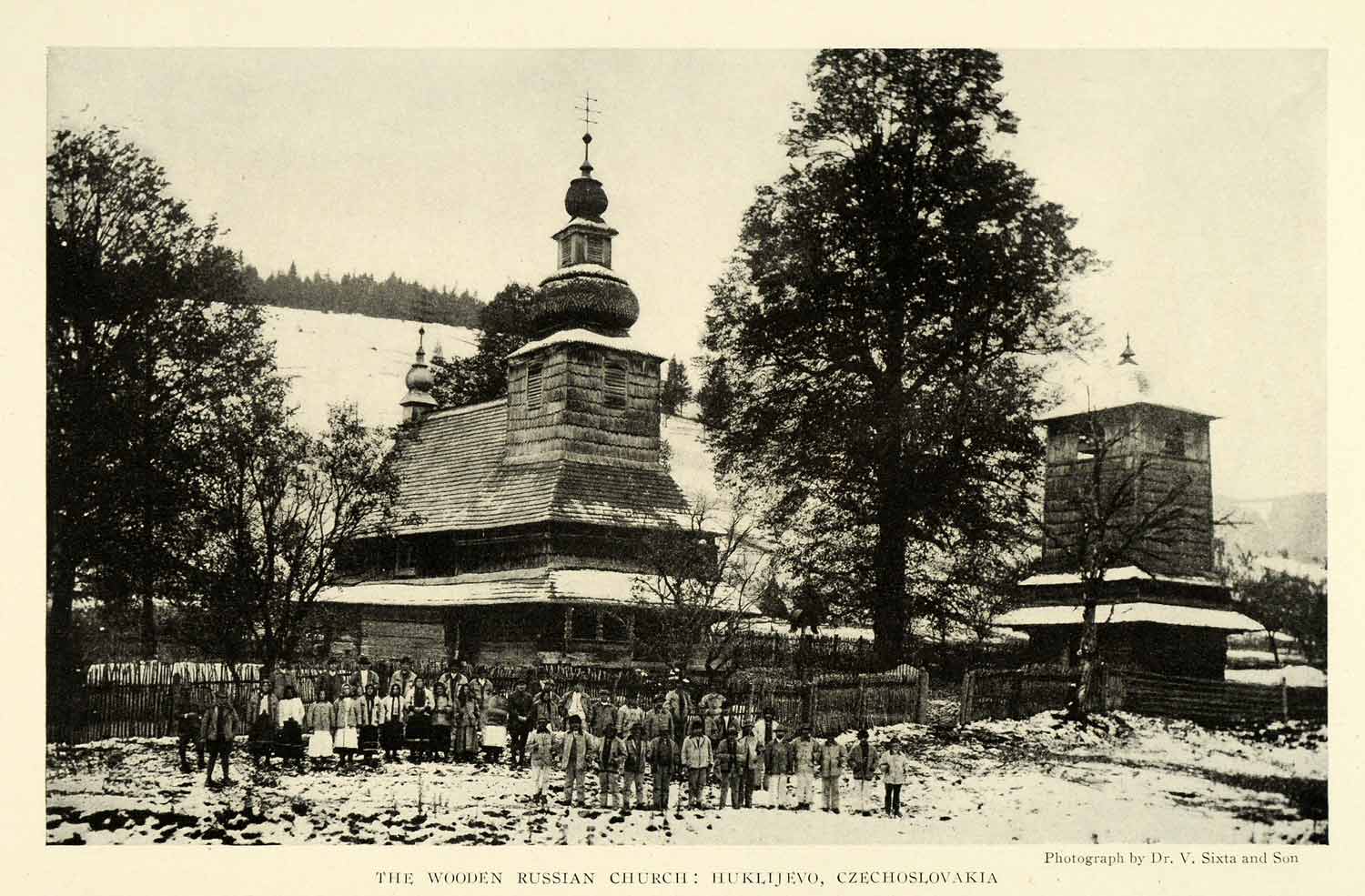 This is an original 1921 halftone print of the wooden Russian Church in Huklijevo in the Czech Republic.