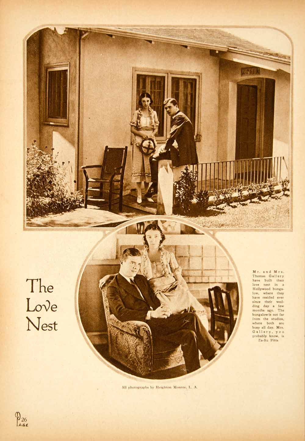 This is an original 1921 sepia rotogravure of Za-Su Pitts and Thomas Gallery standing outside their Hollywood bungalow.