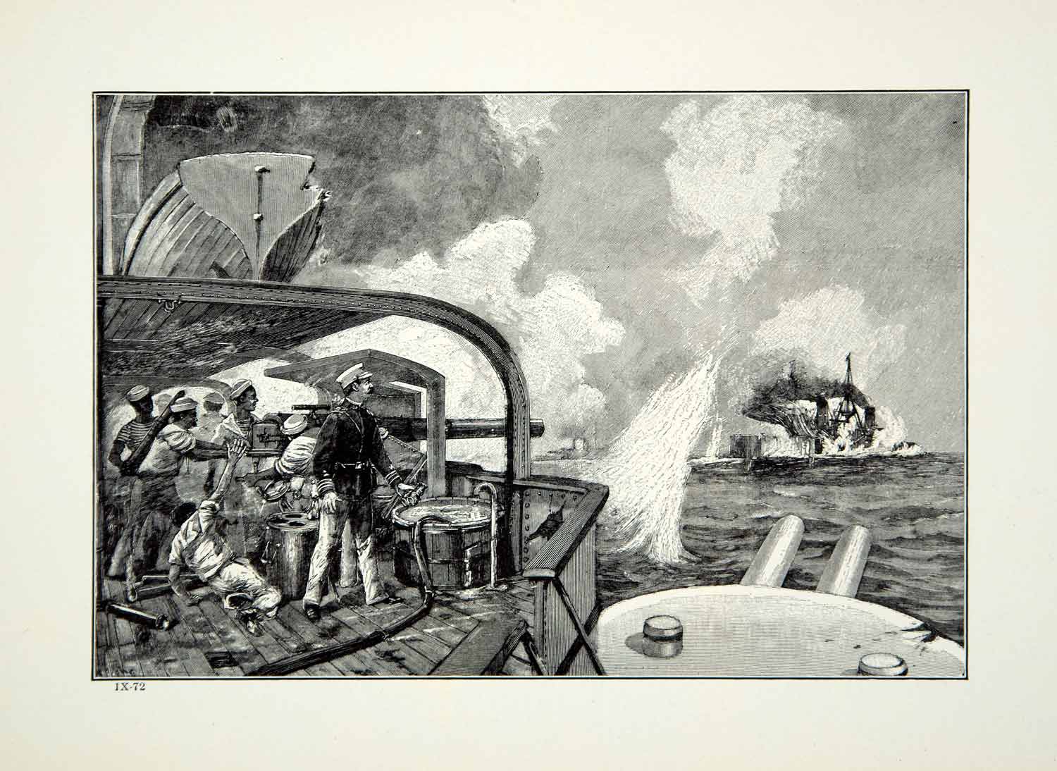 1921 Wood Engraving A Kircher Art Spanish American War Navy Cuba Santiago YWE1
