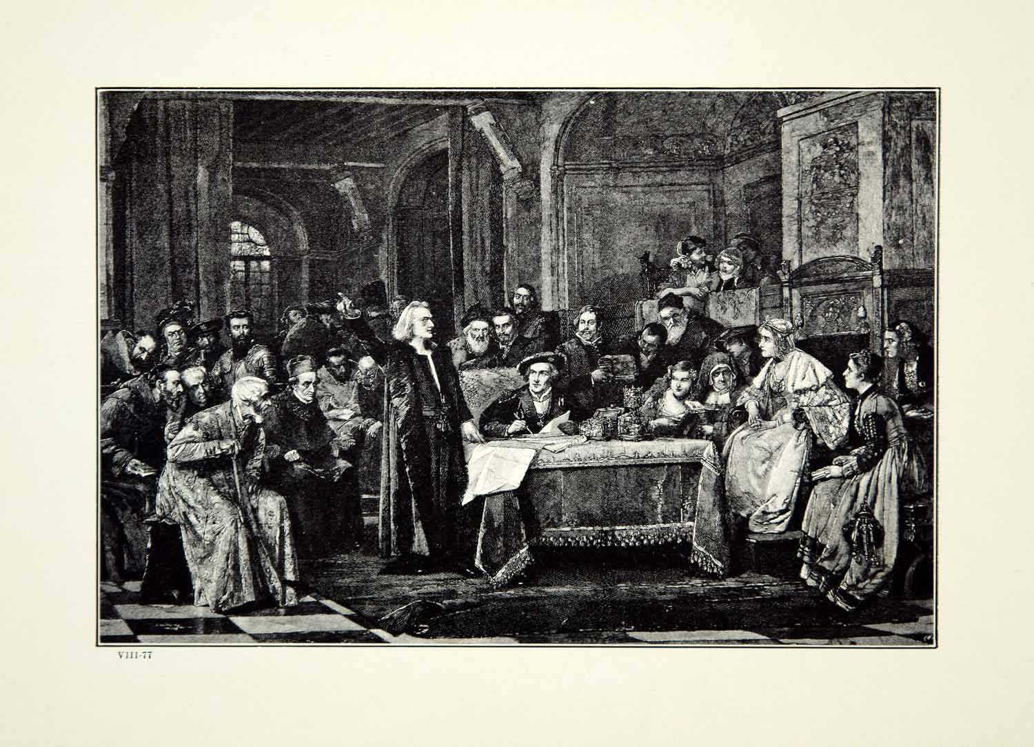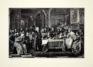 1921 Wood Engraving Christopher Columbus Queen Isabella Spain Vacslav YWE1