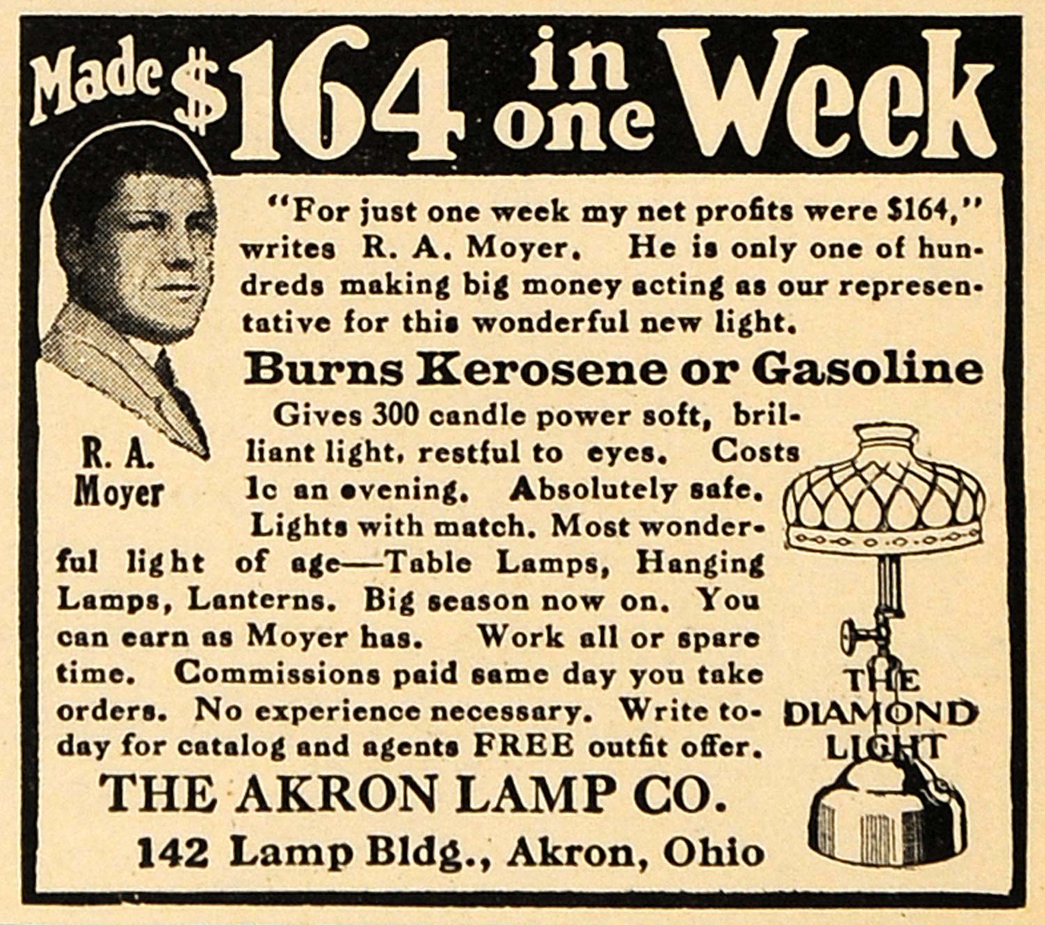 This is a small original 1922 black and white print ad for the Akron Lamp Company promoting the Table Lamps, Hanging Lamps and Lanterns, located at 142 Lamp Building in Akron, Ohio.