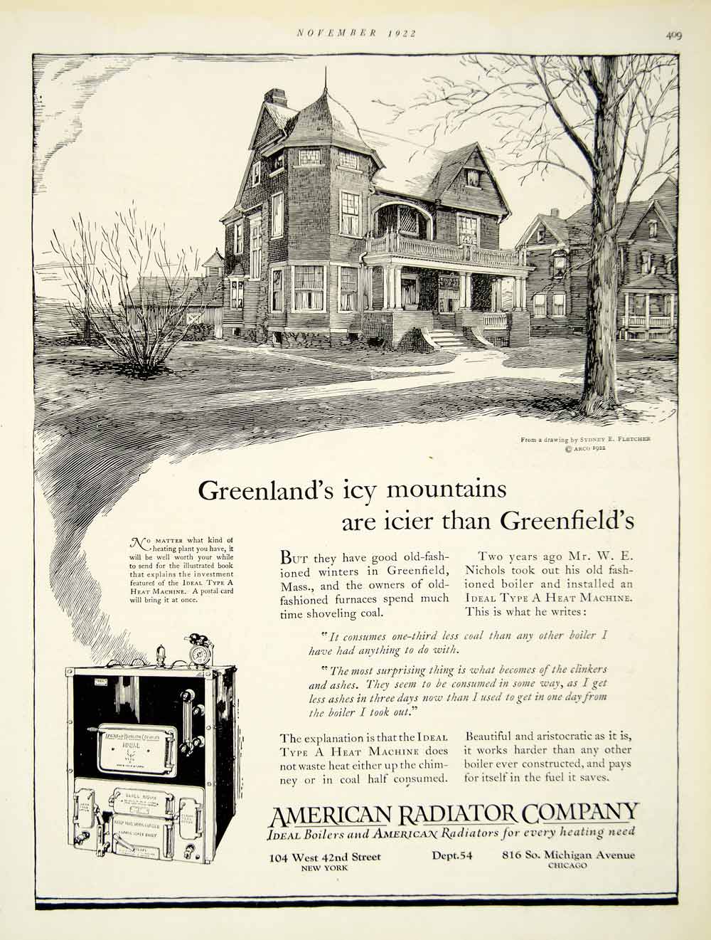 This is an original 1922 monochrome print ad for the American Radiator Company, located at 104 West 42nd Street, New York.