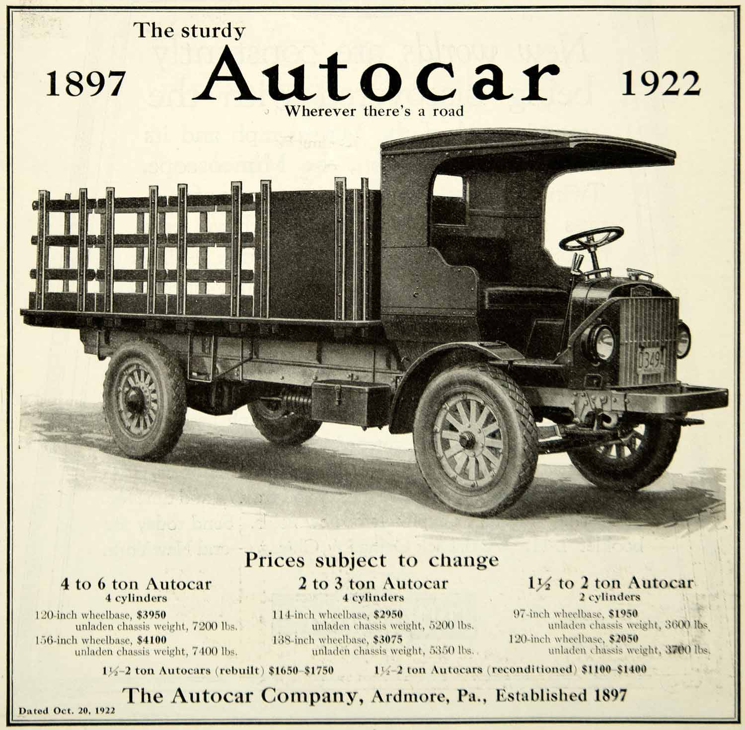This is an original 1922 black and white print ad for the Autocar Company from Ardmore, Pennsylvania.