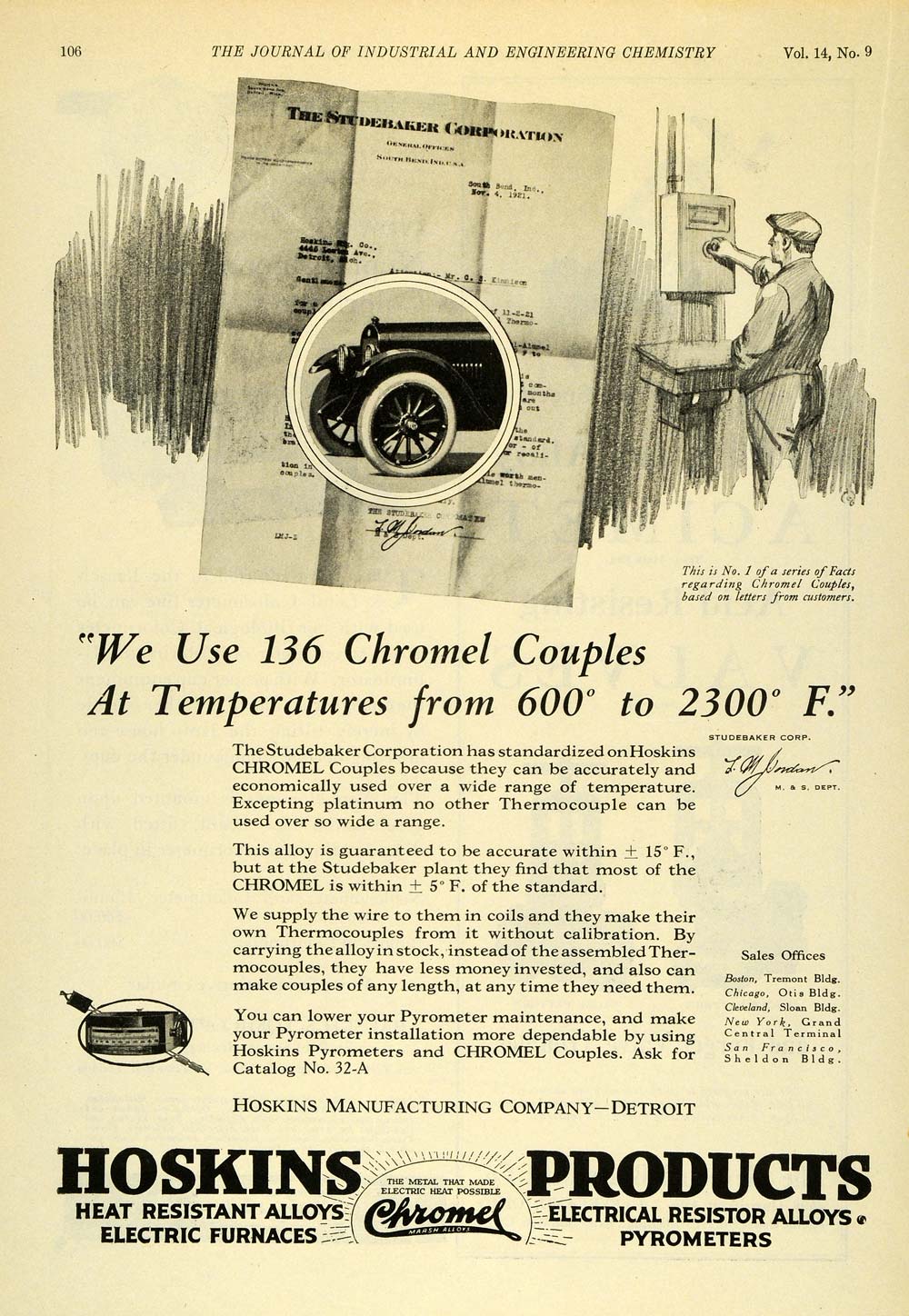 This is an original 1922 black and white print ad for Chromel products from the Hoskins Manufacturing Co. located in Detroit, Michigan.
