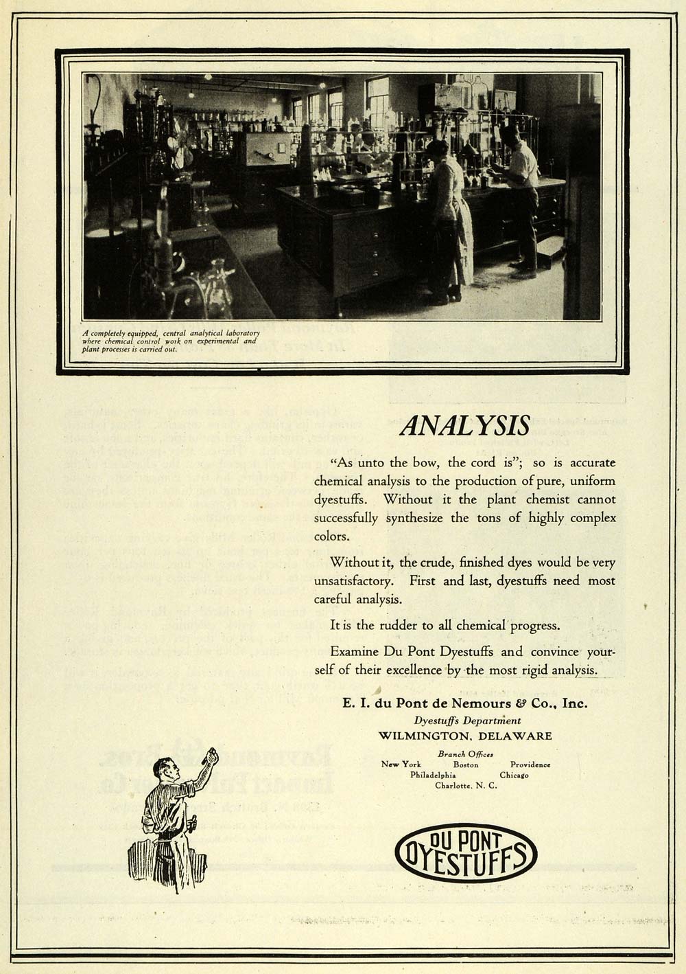 This is an original 1922 black and white print ad for Du Pont Dyestuffs, a product line by E. I. du Pont de Nemours and Company in Wimington, Delaware.