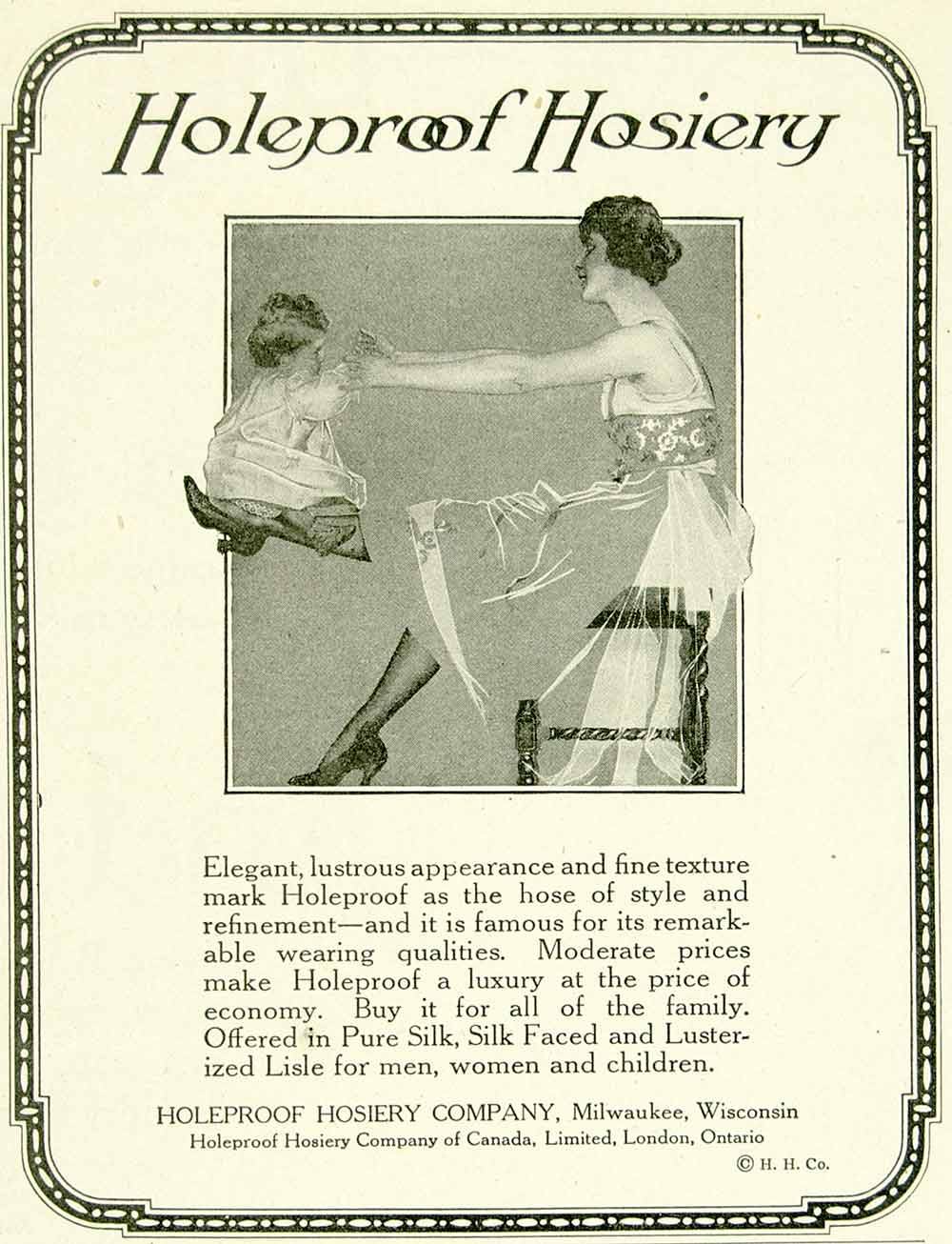 This is an original 1922 black and white print ad for women's clothing that was made and sold by the Holeproof Hosiery Company of Milwaukee, Wisconsin (WI).