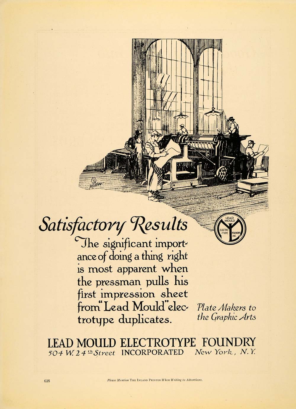 This is an original 1922 black and white print ad for the Lead Mould Electrotype Foundry, Incorporation located at 504 W. 24th Street, New York.