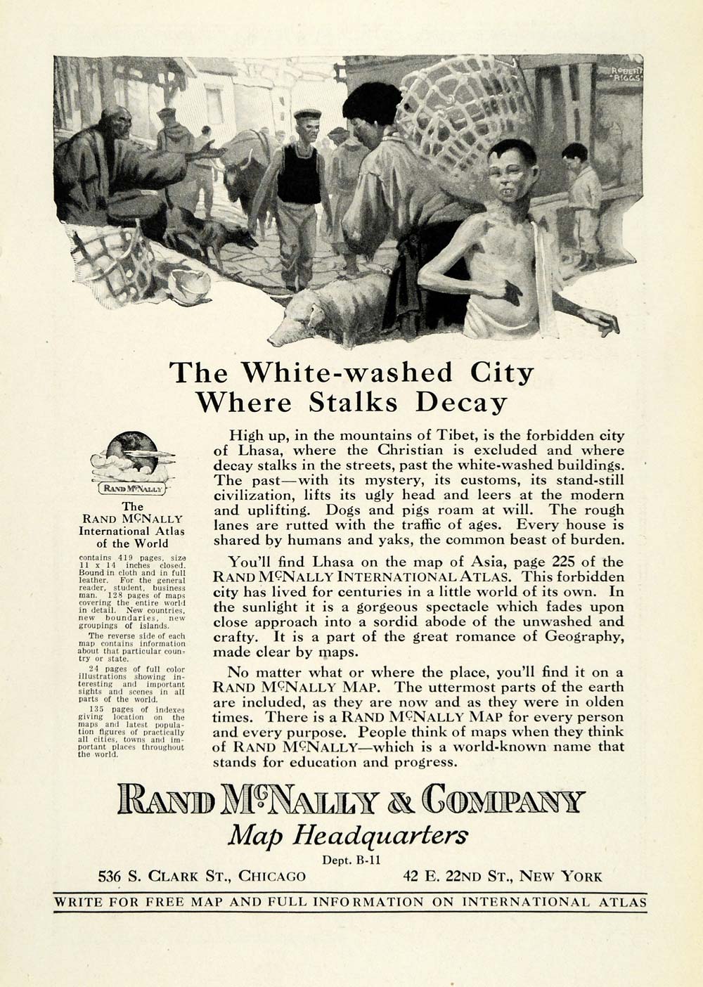 This is an original 1922 black and white print ad for the Rand MacNally Maps, and Rand McNally International Atlas from Rand McNally and Company, Map Headquarters, located at 536 S. Clark Street, Chicago, Illinois.