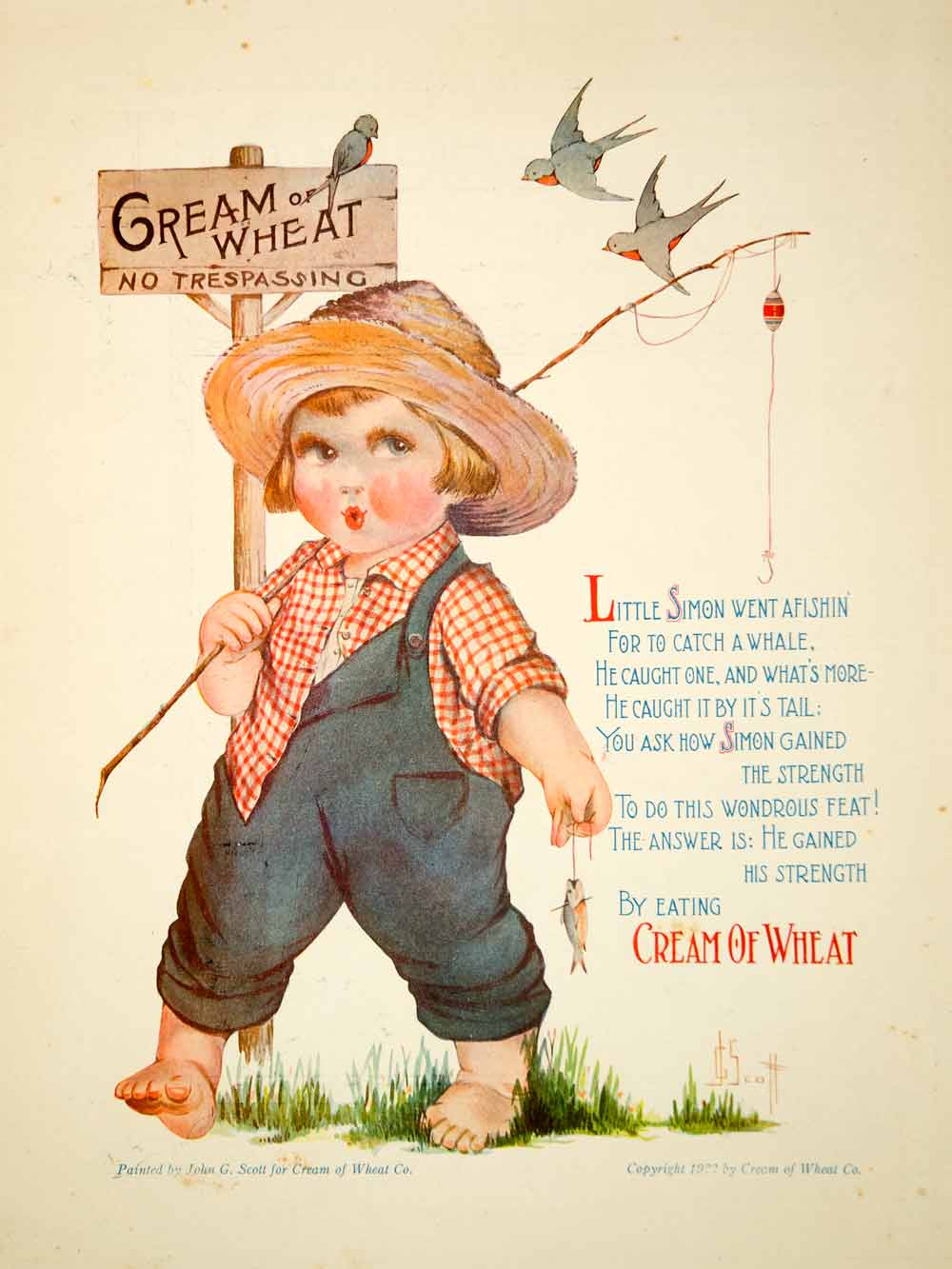 This is an original 1922 color print ad for Cream of Wheat Cereal with an illustration by John G. Scott.