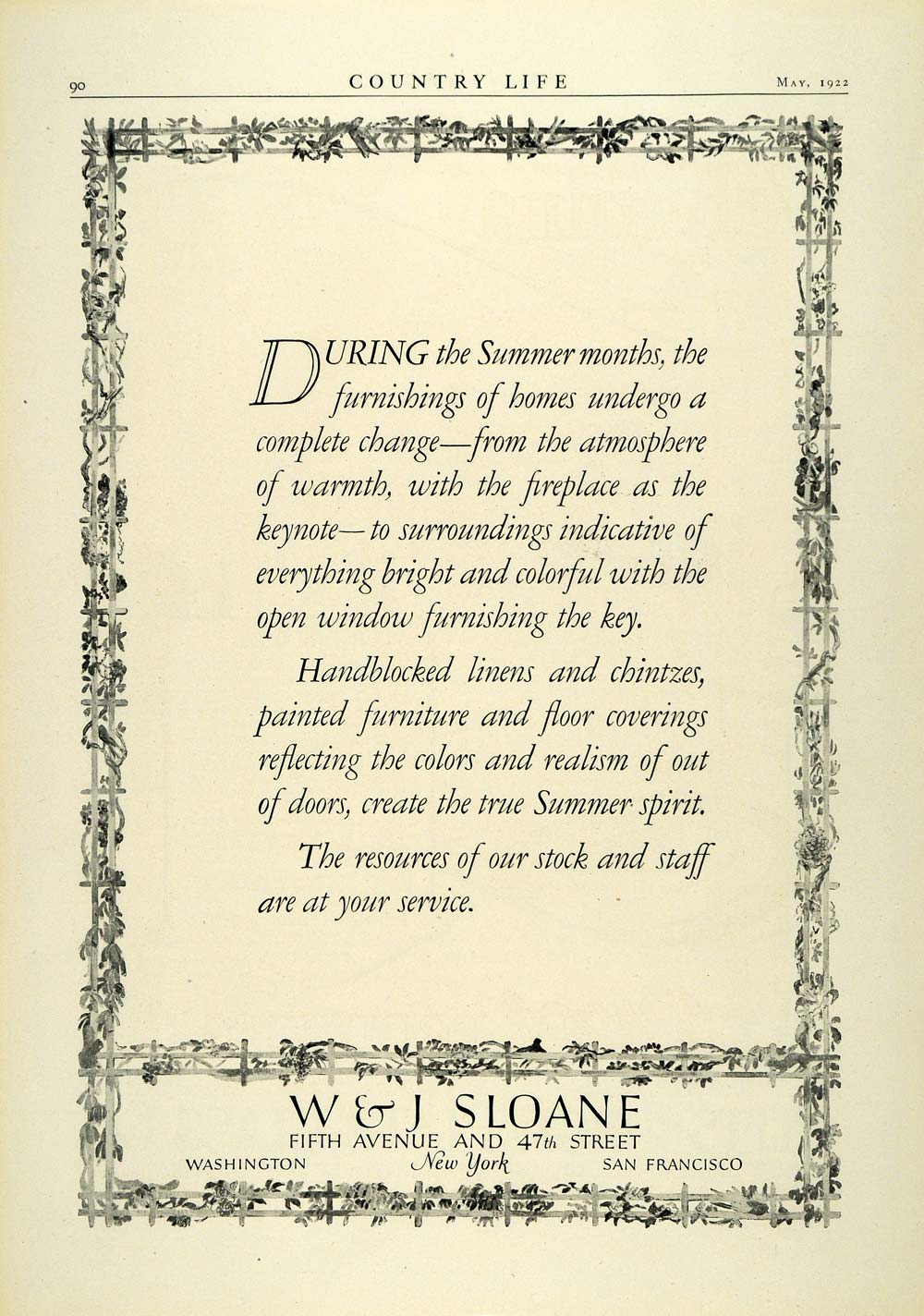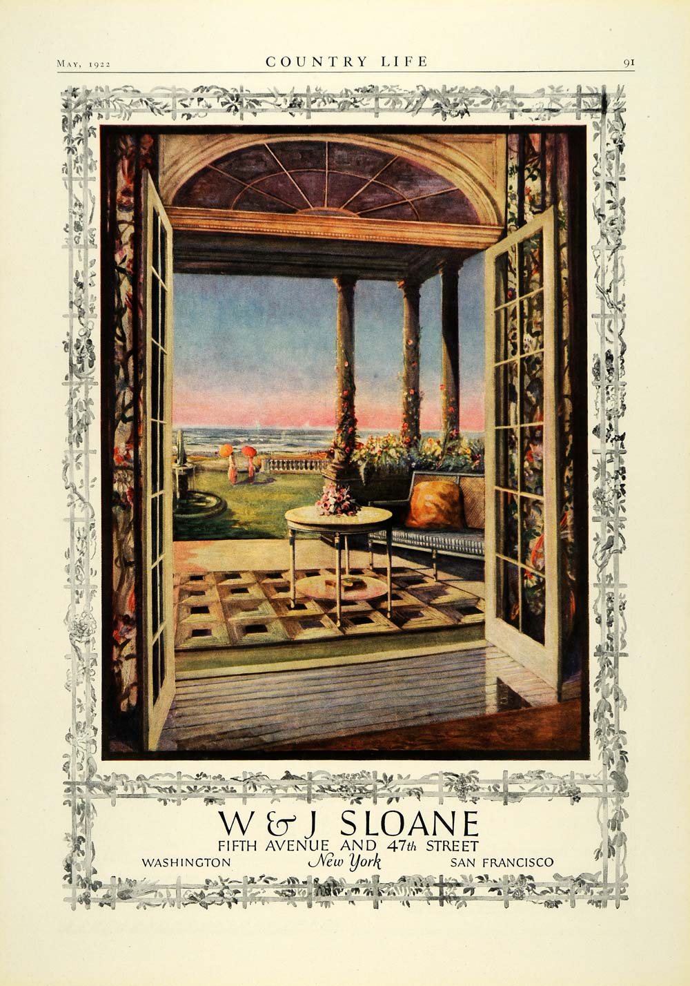 This is an original 1922 color two-page print ad for home furnishings, furniture and decor by W & J Sloane, located on Fifth Avenue at 47th Street in New York. Please see additional image.
