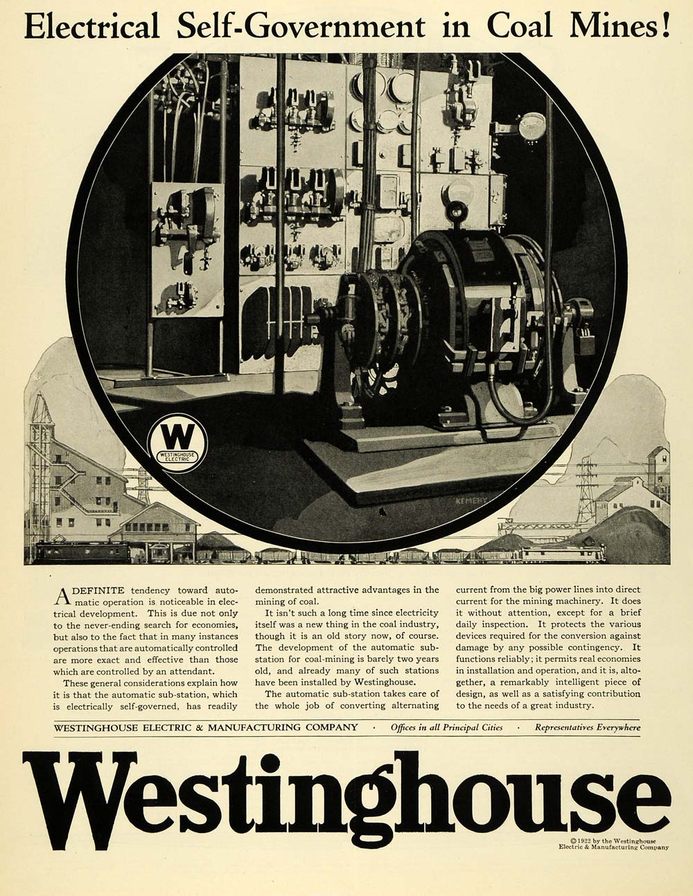 This is an original 1922 black and white print ad for the Westinghouse Electric & Manufacturing Company.