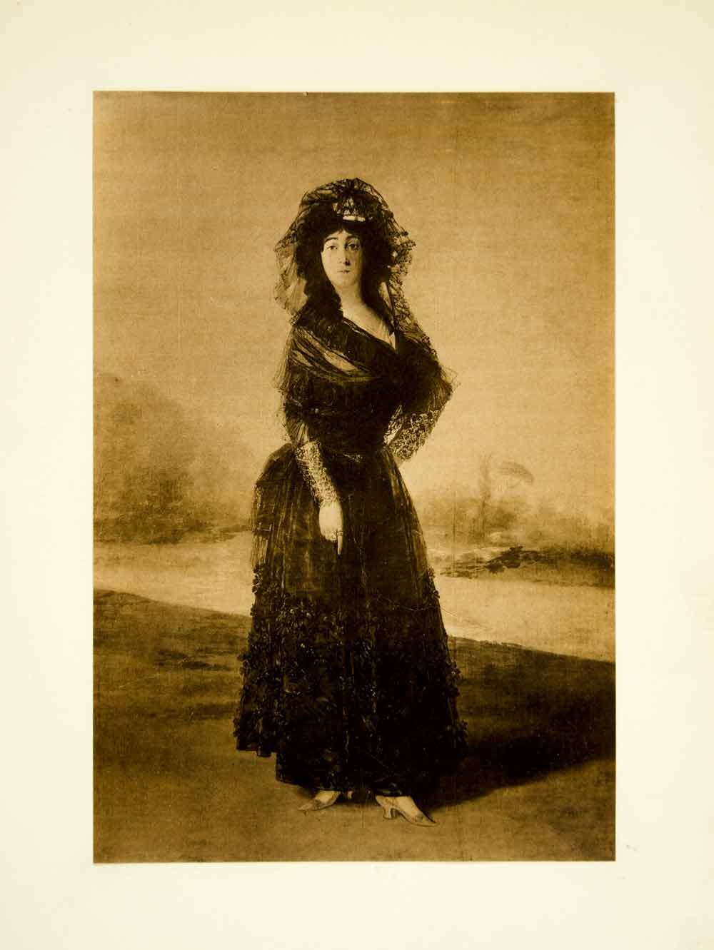 This is an original 1922 tipped-in sepia photogravure of a romantic painting by Francisco Goya that portrayed María Cayetana de Silva, 13th Duchess of Alba.