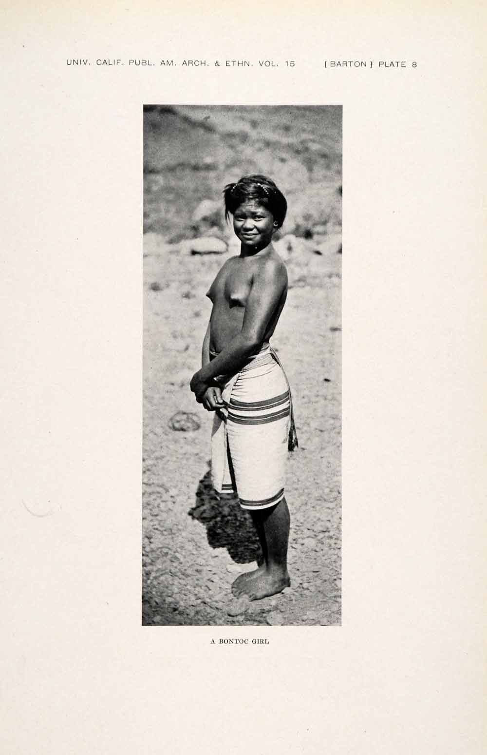 This is an original 1922 halftone print of a girl from the Bontoc Igorot tribe in Luzon, Philippines.