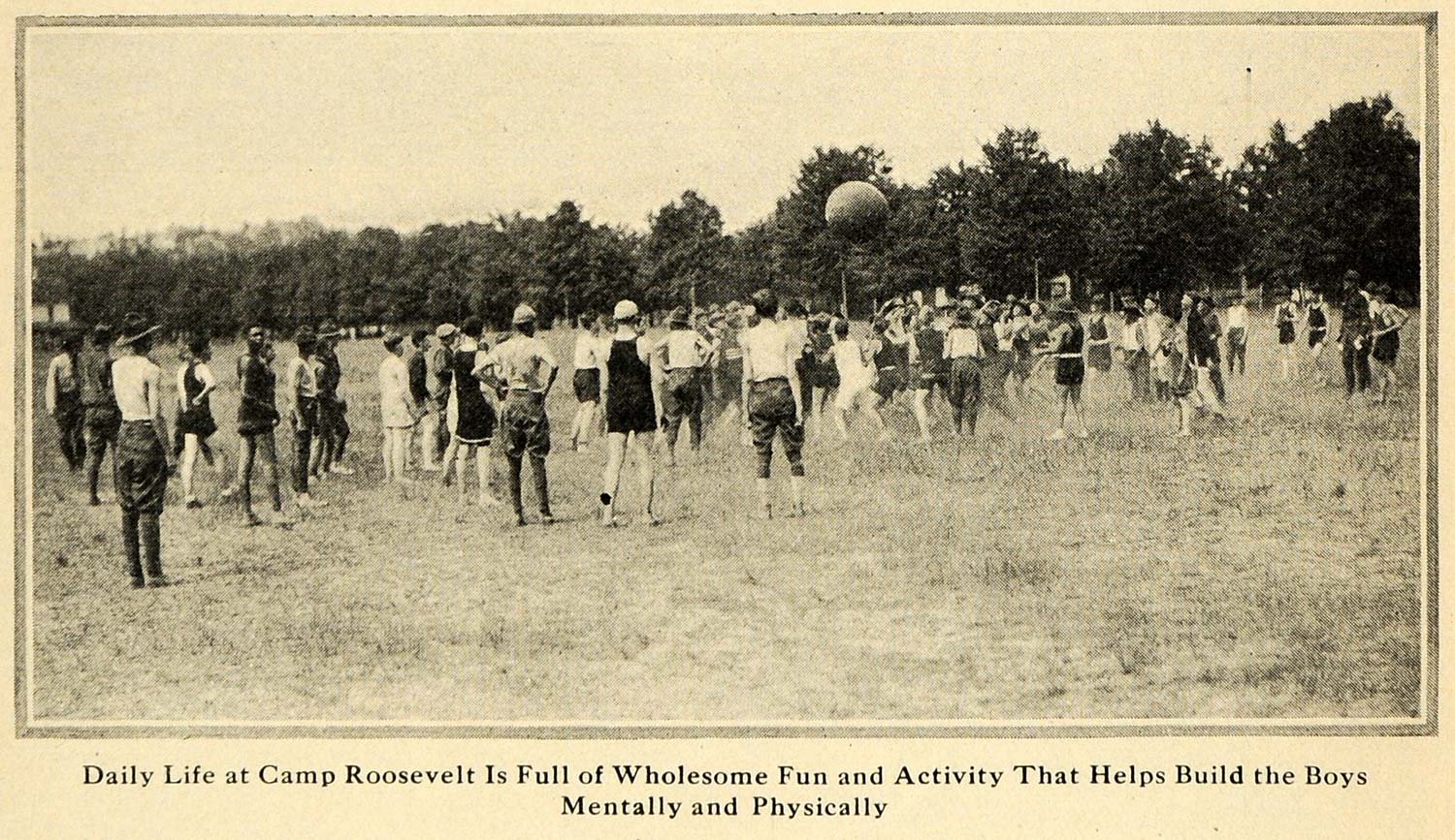 This is an original 1922 halftone print of Camp Roosevelt, located eight miles east of Laporte, Indiana; this camp offers fun activities for boys to gain healthy mentality and physicality.
