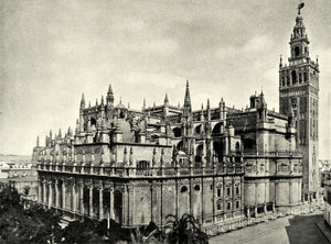 This is an original 1922 halftone print of the cathedral at Seville, Spain. The Sacristia Mayor Dome is visible in the image.