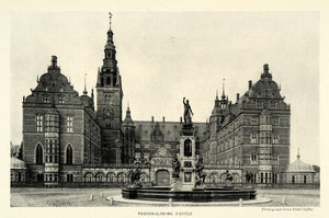 This is an original 1922 halftone print of Frederiksborg Palace in Hillerod, Denmark (Danmark). The castle served as a residence for King Christian IV, and currently serves as the Museum of National History. Photography by Emil Opffer.