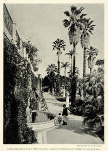 This is an original 1922 halftone print featuring a scene of the hanging gardens of Pedro Do Alcantara situated at the summit of the very steep hill known as the Calcada da Gloria in the Cidade Baixa, Lisbon, Portugal. Photograph by A. W. Cutler.