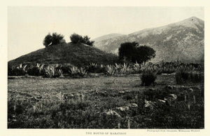 This is an original 1922 halftone print featuring the Mound of Marathon, a pile of earth of 40 feet high marking the spot of the struggle between the Greeks and the Persians in Greece. Photograph from Alexander Wilbourne Weddell.