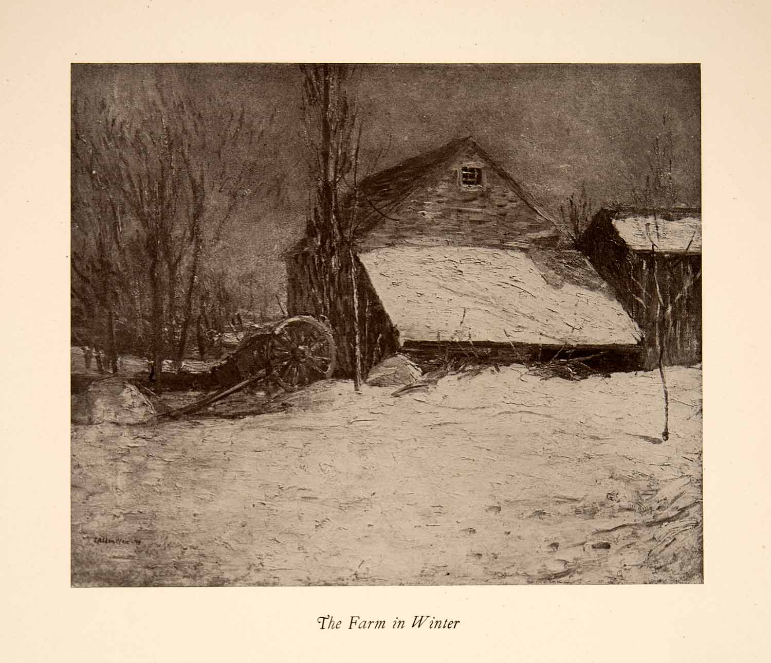 1922 Print Julian Alden Weir Farm Winter Homestead Cart House Impressionism XAT3