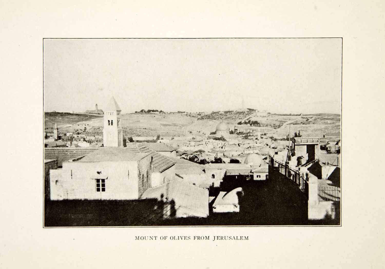This is an original 1922 black and white print of the view of the Mount of Olives from Jerusalem.