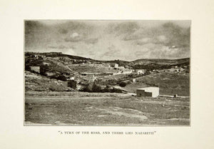This is an original 1922 black and white print that depicts Nazareth, Israel. The captions reads "A Turn of the Road, and There Lies Nazareth."