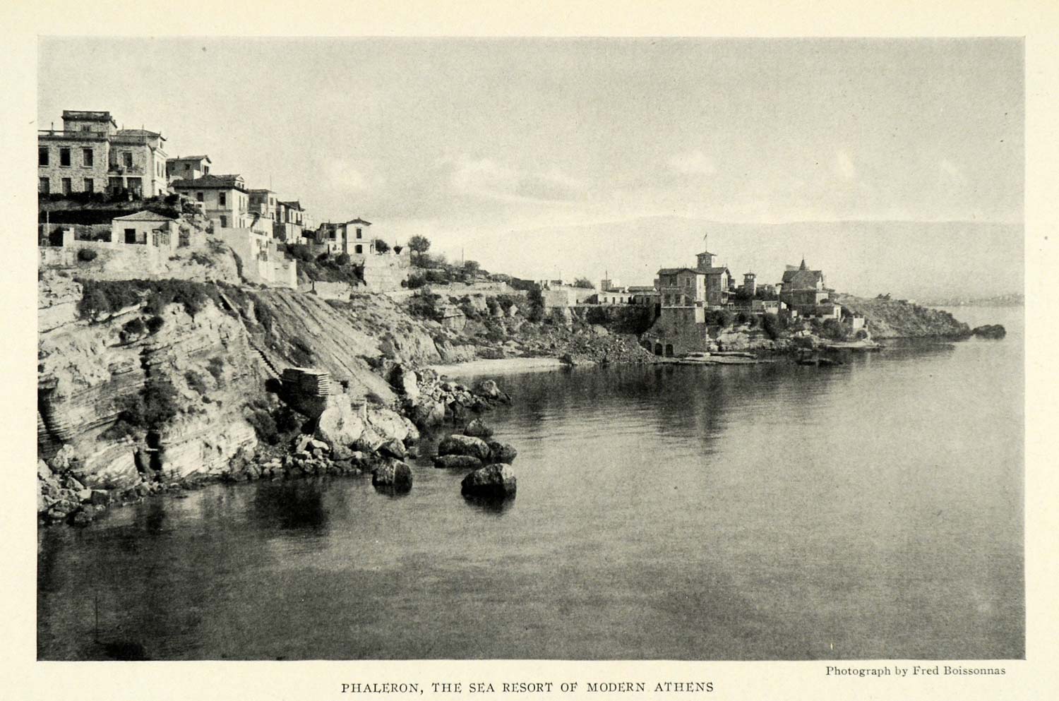 This is an original 1922 halftone print featuring a panorama view of the Phaleron, a sea resort located in Athens, an ancient city in Greece. d
