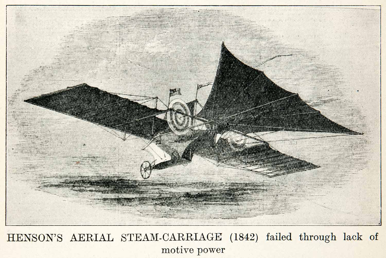 This is an original 1922 black and white halftone print of William Henson's Aerial Steam Carriage. The carriage was unable to fly due to insufficient power.