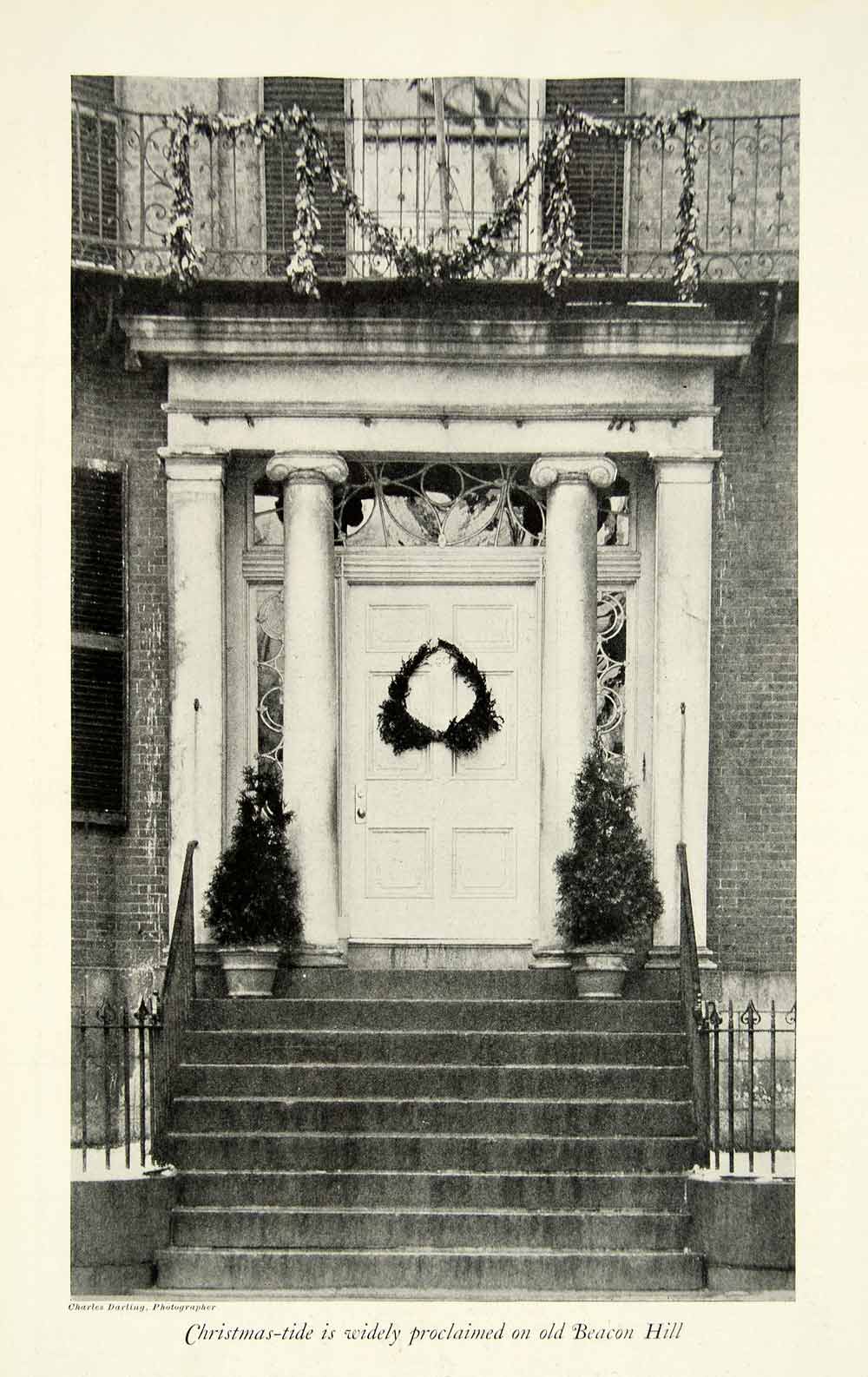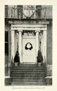 This is an original 1922 monochrome halftone print of the festive entrance to the Women's City Club in Boston, Massachusetts, which was located at 40 Beacon Street.