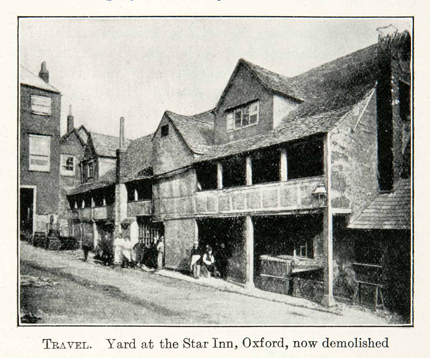 This is an original 1922 black and white halftone print of the Old Star Inn in Oxford, London. The building has since been demolished.
