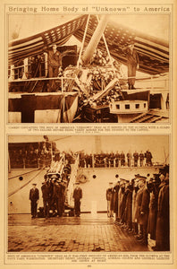 This is an original 1922 sepia rotogravure of America's 'unknown warrior' returning to the states on the ship