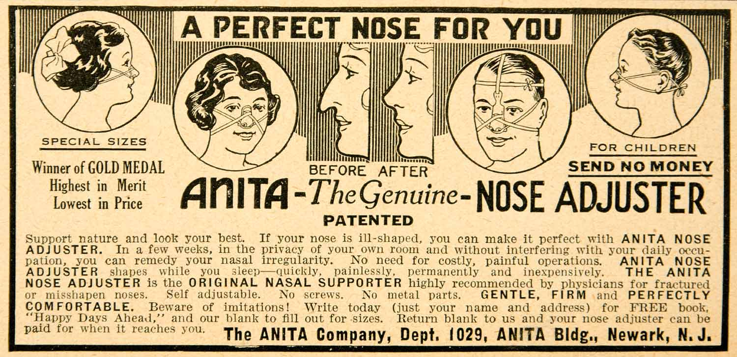 This is an original 1923 monochrome print ad for the Anita Genuine Nose Adjuster.
