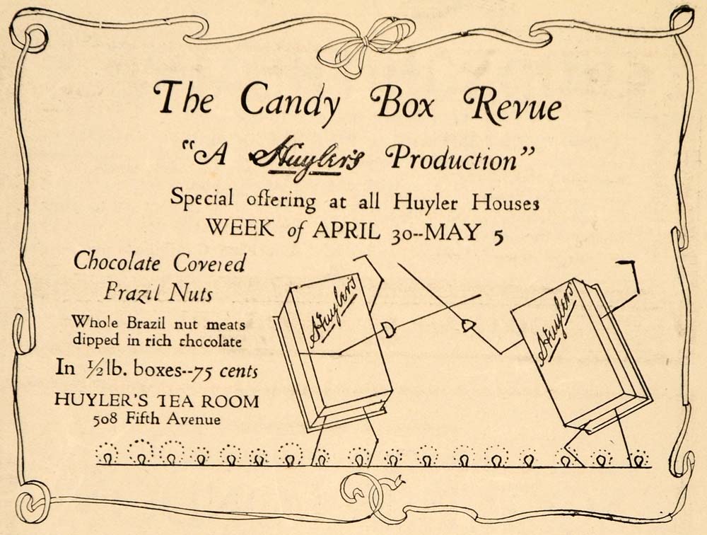 1923 Ad Candy Box Chocolate Brazil Nuts Huyler Tea Room - ORIGINAL THR1