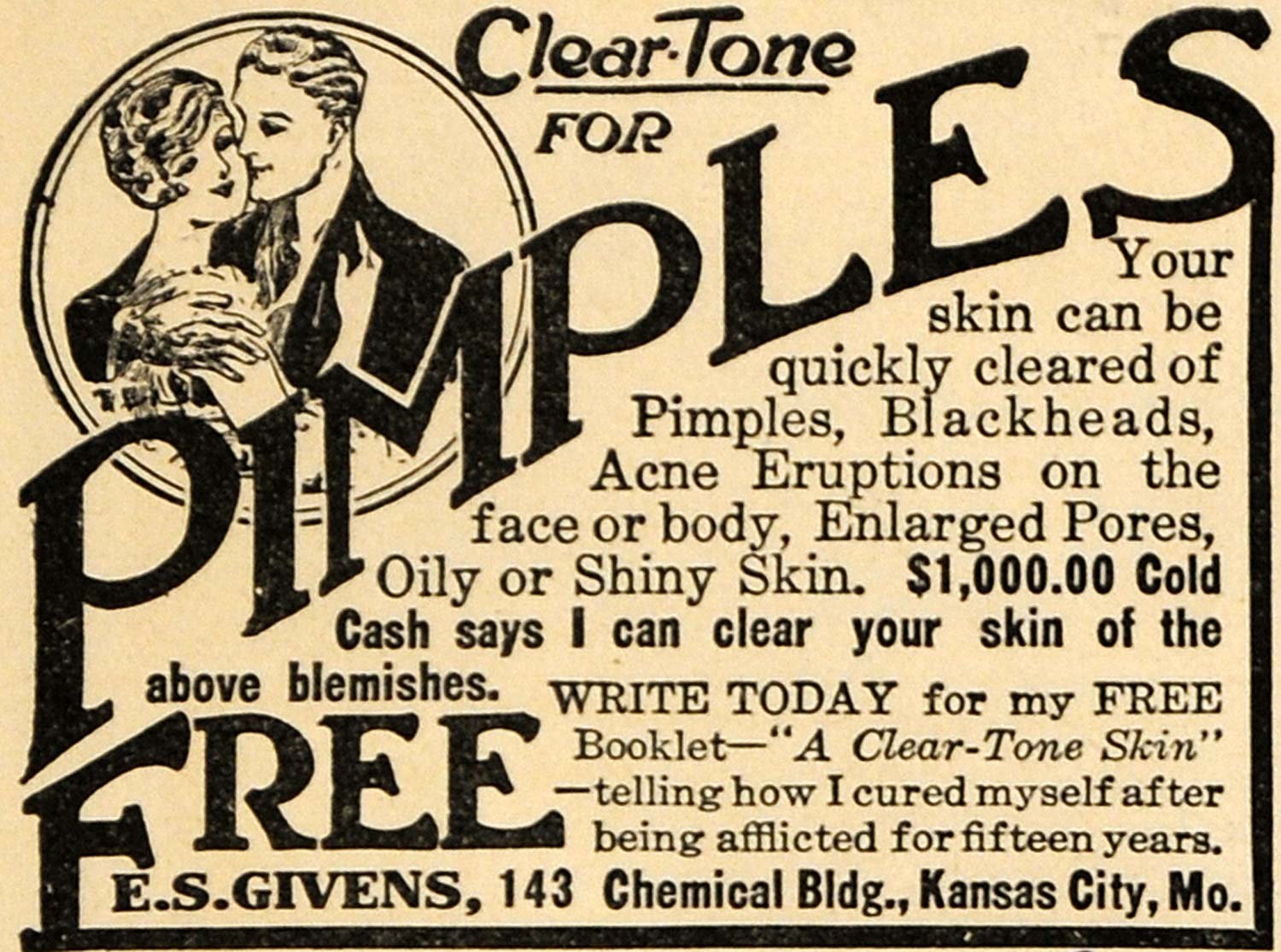 This is an original 1923 black and white print ad for E. S. Givens' remedy for disrupted complexions.