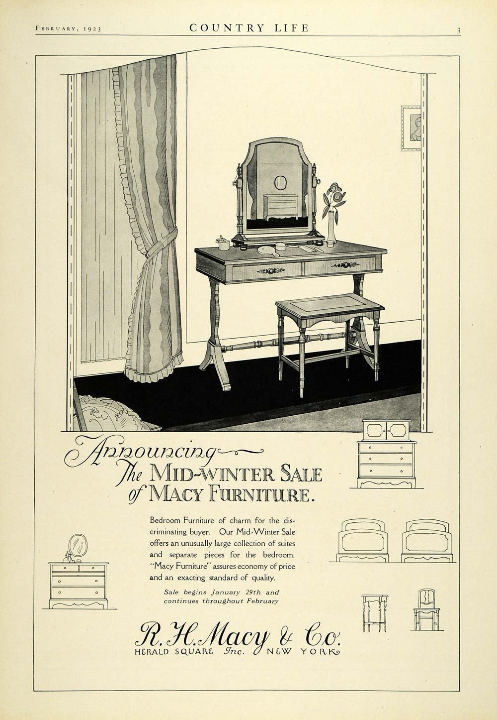This is an original 1923 black and white print ad for the Mid-Winter furniture sale of R. H. Macy and Company on Herald Square in New York.
