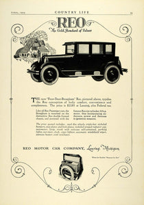 This is an original 1923 black and white print ad for the Reo Four-Door-Brougham automobile from Reo Motor Car Company, Lansing, Michigan.