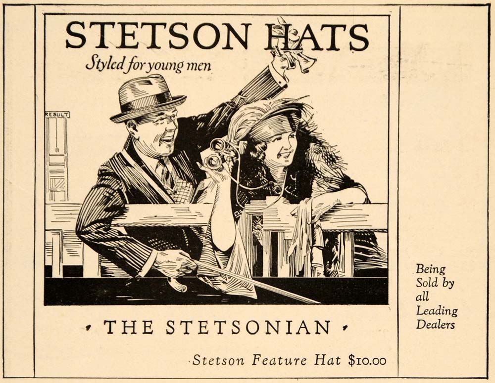 This is an original 1923 black and white print ad for Stetson Hats from the John B. Stetson Company of St. Joseph, Missouri. Supposedly, Custer went into the Battle of Little Big Horn wearing a Stetson hat.