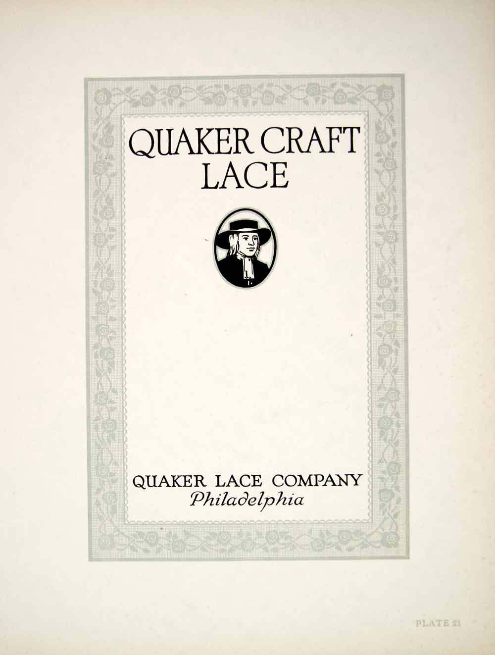 1923 Lithograph AJ Johnson Folk Art Quaker Lace Tablecloth Philadelphia PA CCD1