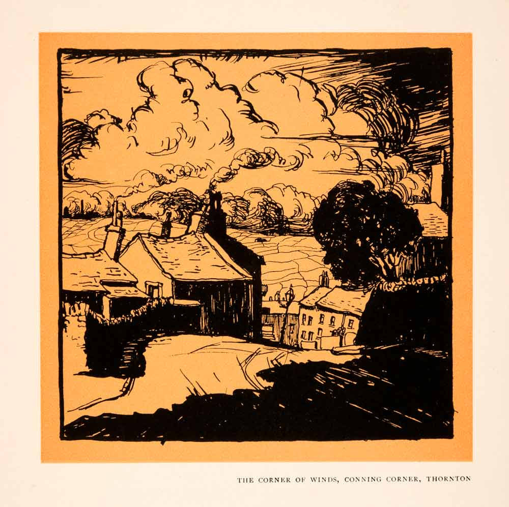 1923 Lithograph Corner Winds Conning Thornton Village England West XGFA5