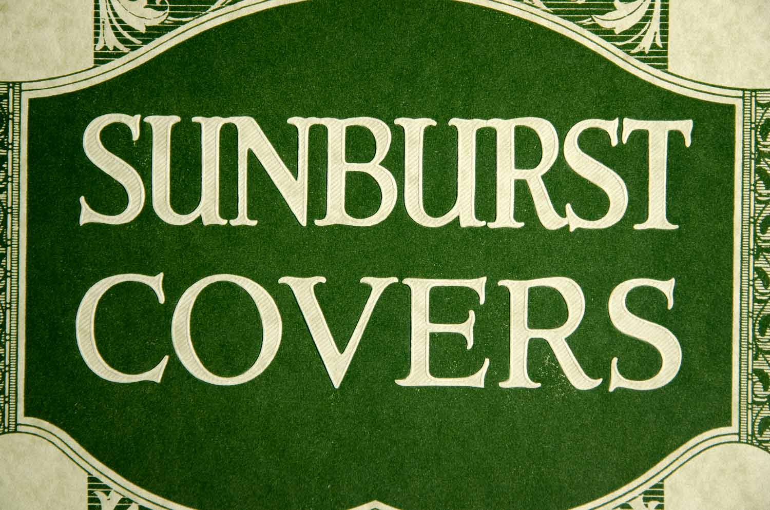 This is an original 1923 color lithograph cover for Sunburst Covers. This original cover is produced using one type of color cover ink and an emboss die for the lettering, creating a stunning raised texture to the image. The pristine nature of this piece, exceptional color saturation, and dramatic textures make this highly collectible. Please see both images.