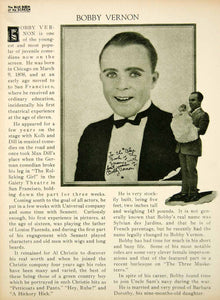 This is an original 1923 black and white halftone print with a portrait and a brief biographical sketch of silent film comedian, Bobby Vernon (1897-1939).