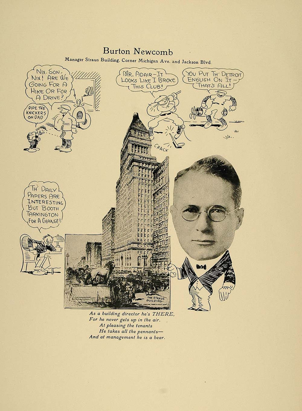 Period Paper has obtained an unusual collection of prints with character sketches of Chicago movers and shakers from the 1920's. These men (yes, they are all male) were active in the business, industrial, and professional life of the city, and they are depicted here in a cartoon-style format with an illustrative and humorous verse by J. P. McEvoy.