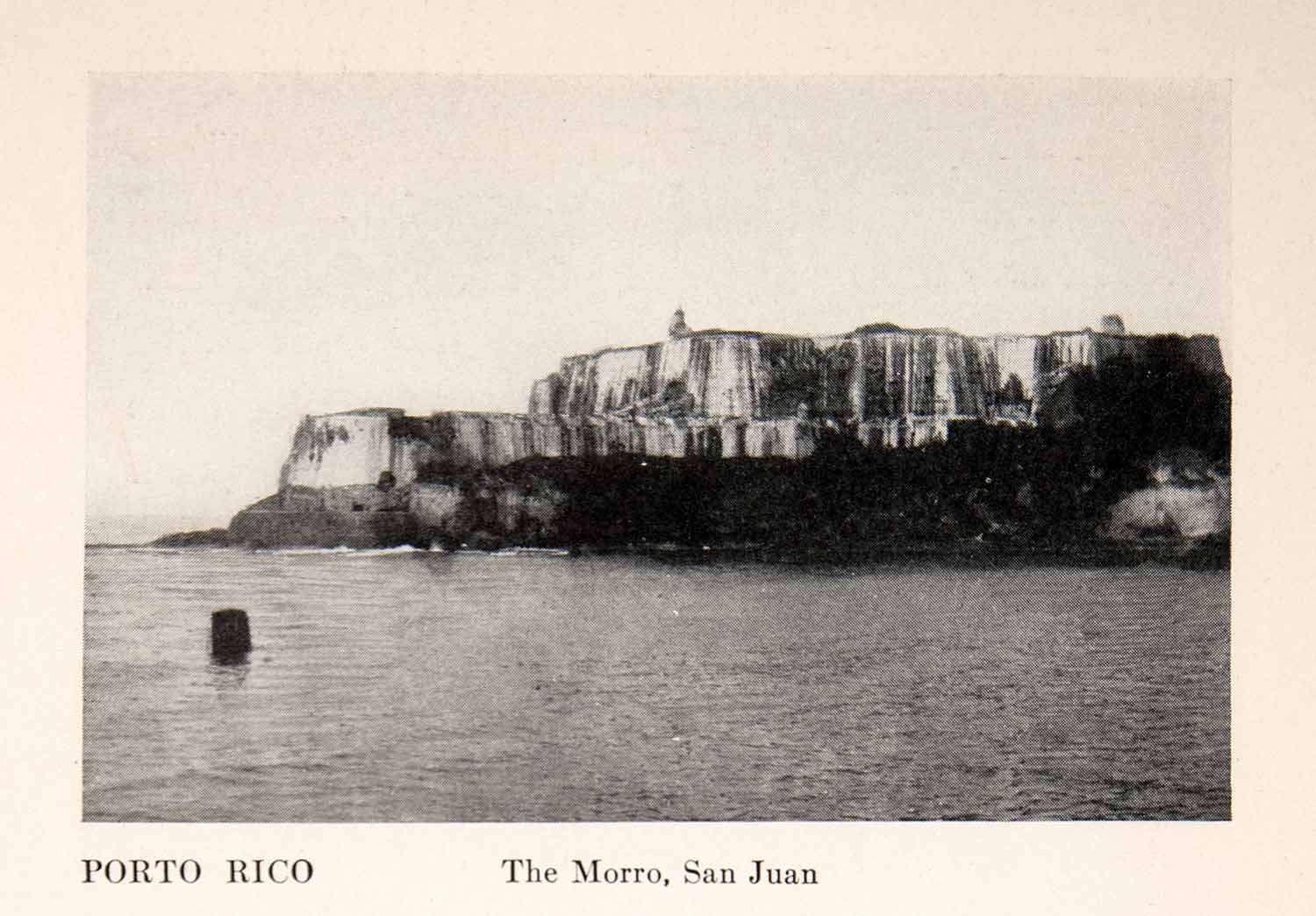 This is an original 1923 black and white halftone print of the Castillo San Felipe del Morro fort in San Juan, Puerto Rico.