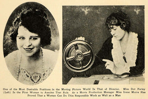This is an original 1923 halftone print of Dot Farley and Irene Morra. Farley was the daughter of actors and was the first woman to become a director. Morra was a director as well.